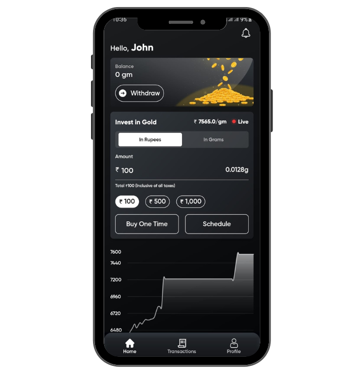 Our app provides a seamless way for you to buy, store, and manage gold, ensuring your savings are protected and easily accessible.